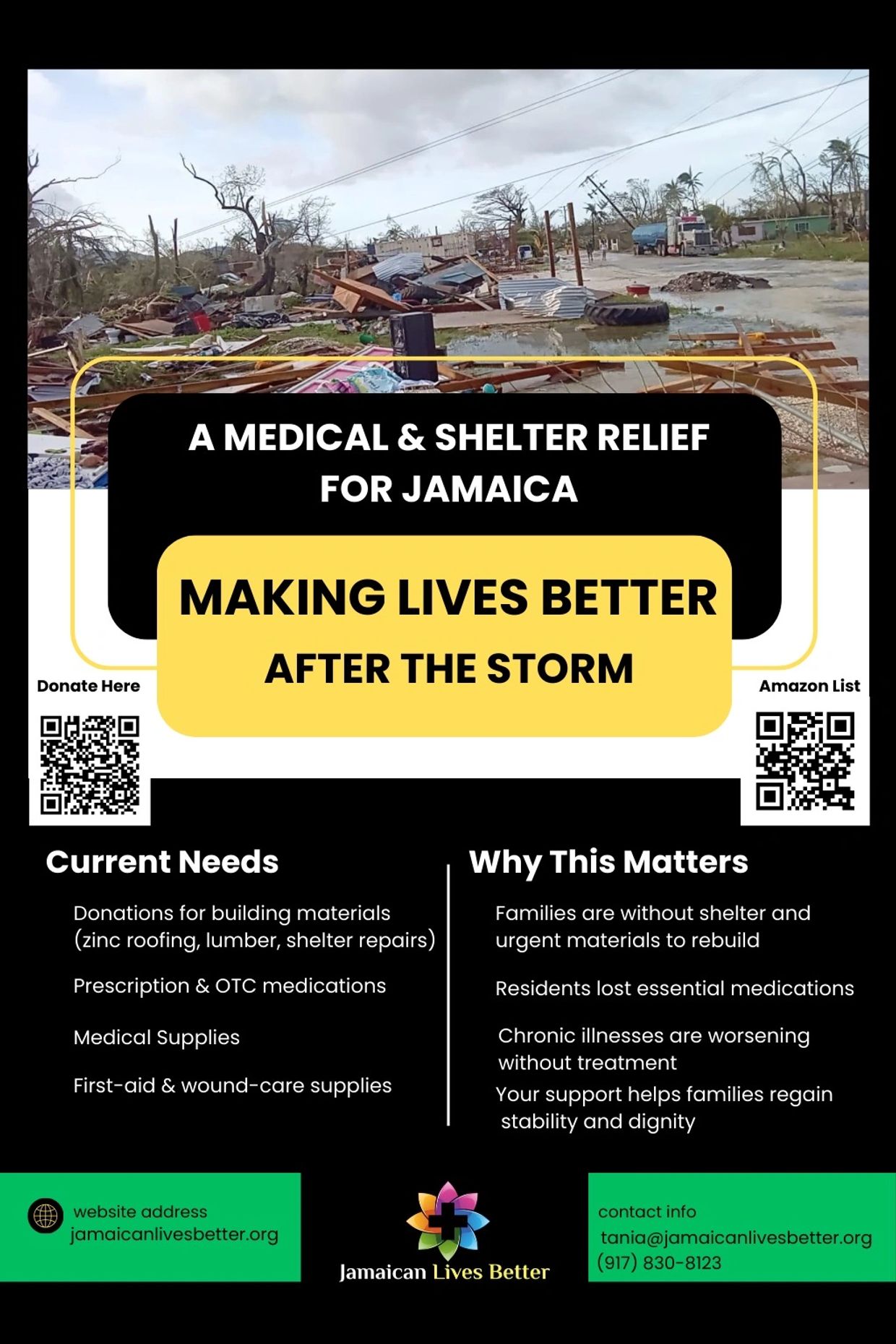 To respond to this urgent need, Jamaican Lives Better has launched the “Making Lives Better After the Storm” initiative—an emergency medical relief effort designed to support vulnerable families and restore access to essential healthcare services.
